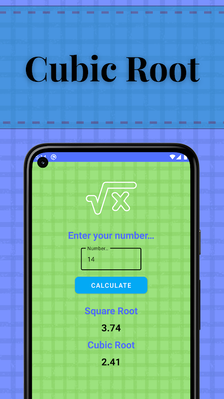 シンプルなインターフェイス: 私たちのアプリはクリーンでユーザーフレンドリーなインターフェイスを提供しており、誰でも数回タップするだけで平方根と立方根を簡単に計算できます。