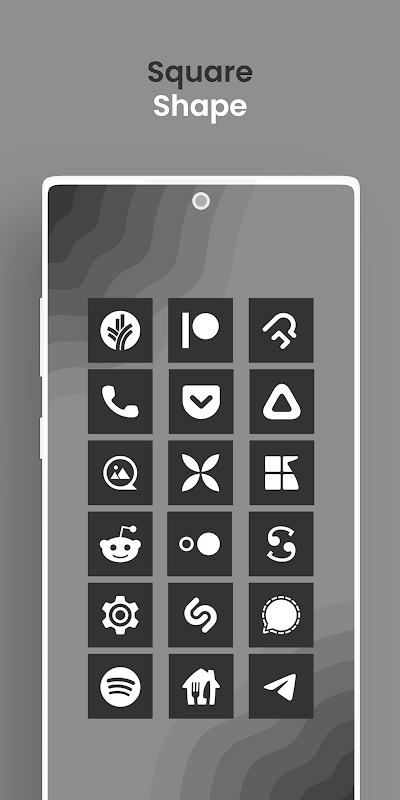 Android ピクセル スタイルのアイコン パックに基づいた、この最小限のフラットな正方形の暗い形を使用して、ホーム画面の外観をカスタマイズしてみましょう