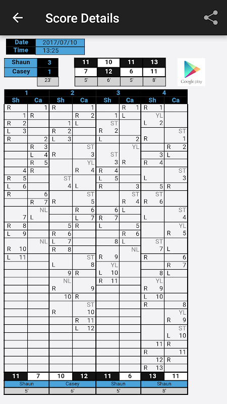 &ブル; フロント/バック/ボレーからフォアハンド/バックハンドの勝者/エラーを記録して概要を表示する可能性