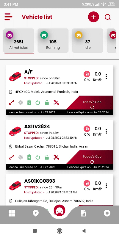 このアプリは、車両のライブ追跡に役立ち、車両の速度、走行距離、アイドル時間とともに追跡履歴を確認できます。ユーザーはエリアのジオフェンスを設定でき、ジオフェンスから離れるか入るたびに通知されます。速度が80を超える場合は、ユーザーにも同様の通知が送信されます。