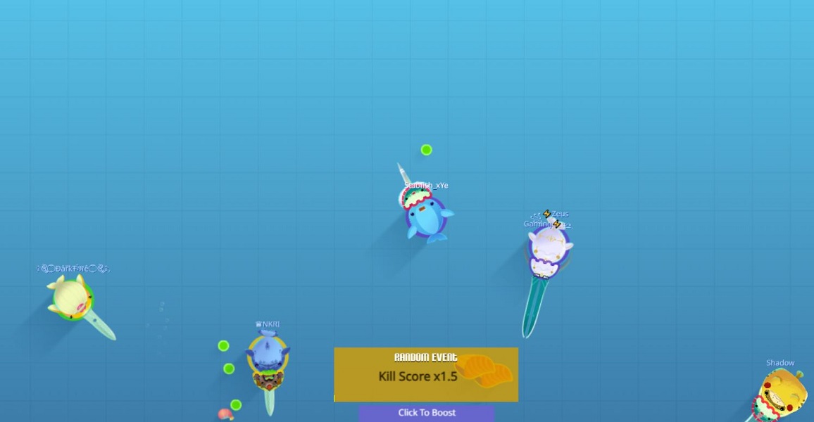Eat food to gain boosts and a higher score. Eliminate other fish by attacking from the side and behind. Each kill adds length to your tusk. Once your tusk is long enough you can be bolder with your attacks.