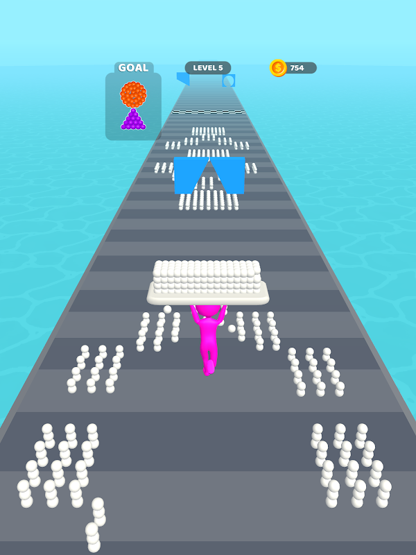 Swerve to control your character, stack the balls in your way and shape through holes!