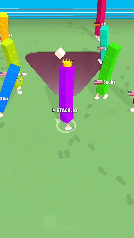 対戦相手をキックしてカラースタックを倒し、キューブを集めてスタックカラータワーを成長させよう!