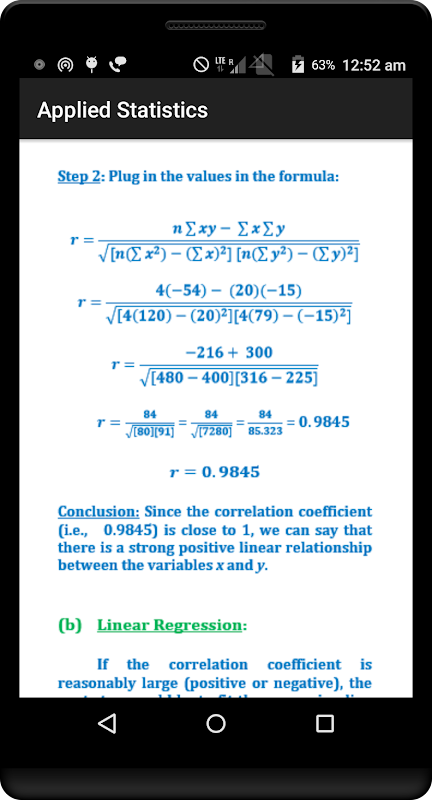 -> Linear Correlation (Example computing Correlation Coefficient)