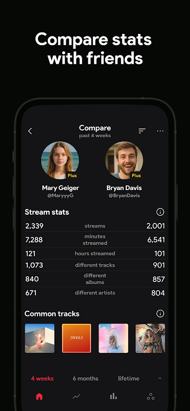 自分のアカウントの統計を表示できるだけでなく、友達を検索して追加し、友達と自分の統計を比較することもできます。