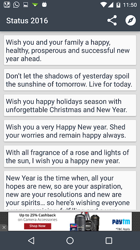 Click on any of the Status will be copied and also feature to share on other application.