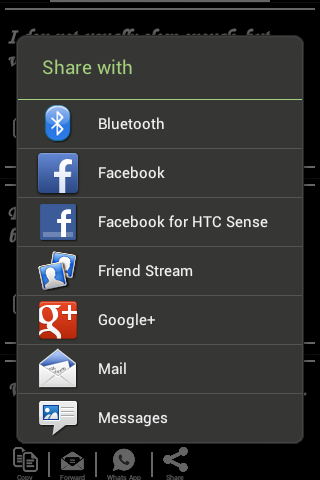 - Particular status having functionality like Copy, Forward, Share with whatsapp, Sharing with installed social application.