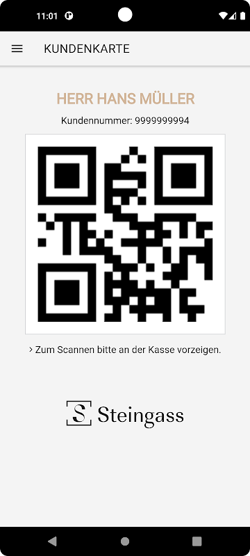 Steingass アプリを使用すると、すべての顧客特典を自動的に享受でき、デジタル顧客カードを常にスマートフォンに持ち歩くことができます。