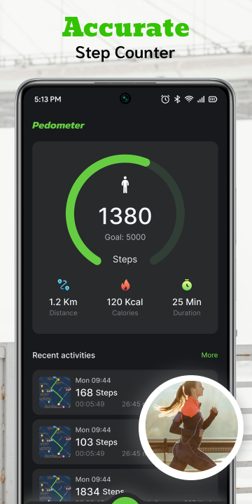 正確な歩数計: 携帯電話の内蔵モーションセンサーを使用して毎日の歩数を簡単に追跡し、すべての歩数が目標に向けてカウントされるようにします。