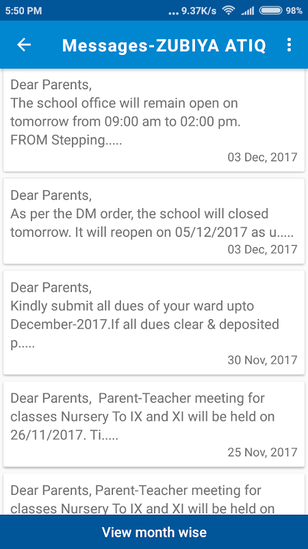 •出席、試験結果および他の学校の活動のような更新活動。