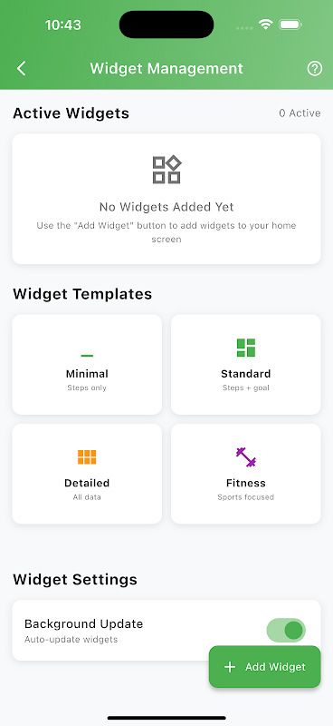 カスタマイズ可能な美しいウィジェットで、アプリを開かずに歩数・カロリー・目標を一目でチェック。