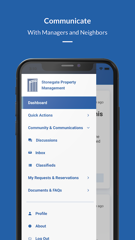 Stonegate Property Managementを使用すると、コミュニティにすばやくアクセスできます。住宅所有者または居住者として、どこにいても接続を維持できます!