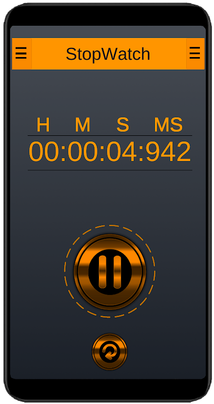 Начало и конец отсчёта делаются с помощью кнопки в центре экрана. Вы можете отслеживать время в цифровом виде (сверху). Для сброса нажмите кнопку расположенную ниже. Кнопки поставлены таким образом, чтобы было можно держать телефон и управлять приложением лишь одной рукой.