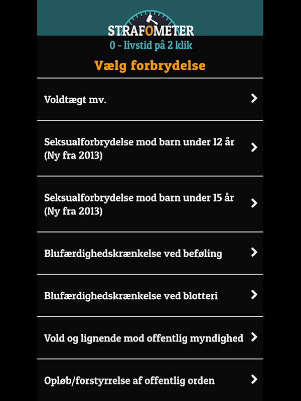Få svaret med Strafometer der beregner din straf baseret på alder, officielle forbrydelsestyper med data fra danmarks statistik, politiet og domstolene.