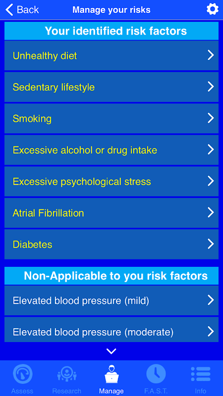 受賞歴のある、検証済みの無料で使用できる脳卒中リスク計アプリは、個々の脳卒中関連リスクを評価するためのユニークで使いやすいツールです。リスクは、年齢、性別、民族、ライフスタイル、および脳卒中の可能性に直接影響するその他の健康要因などの情報を使用して計算されます。これは、個人や医療専門家が脳卒中のリスクと発生を減らすのに役立つ新しいツールとして設計されています。