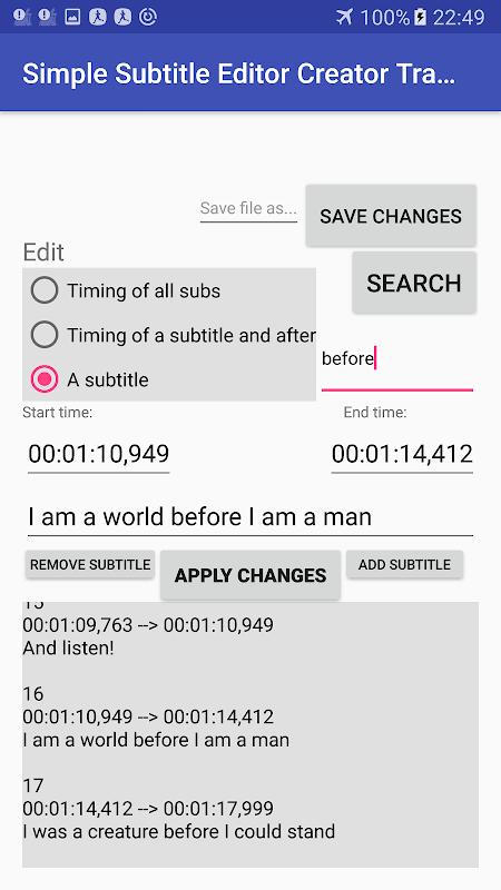 Or maybe you prefer a mobile app for easy and fast editing of existing subtitles on-the-go?