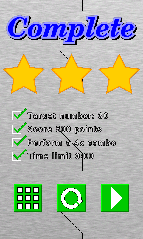 Summation is a match 3 game, but with a twist. To complete each level, you must reach a target number. This is achieved by adding, subtracting, multiplying and dividing the tiles on the board by matching 3 or more of them.