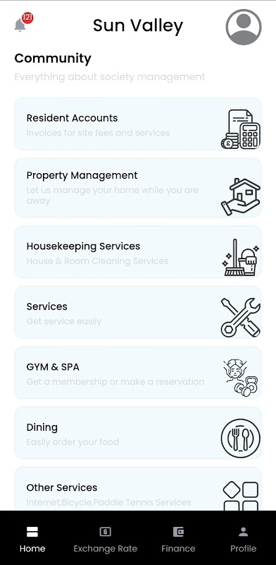 Sun Valley Resort and Residency は、集合住宅、アパート、ゲート コミュニティ向けに設計された総合的な不動産およびコミュニティ管理アプリです。このアプリは、オンライン決済、お知らせ、メンテナンスリクエスト、予約管理、コミュニケーションツールなどの機能を提供し、シームレスで効率的な生活体験を保証します。