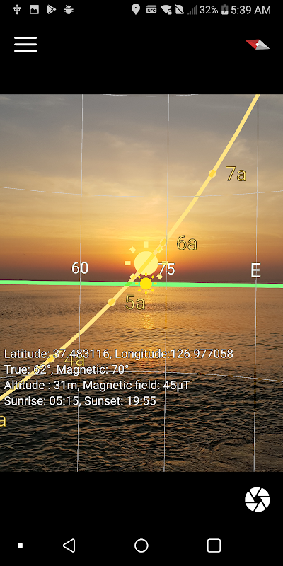 Sunアプリは、ARのようなカメラ画像上に太陽の位置を表示します。