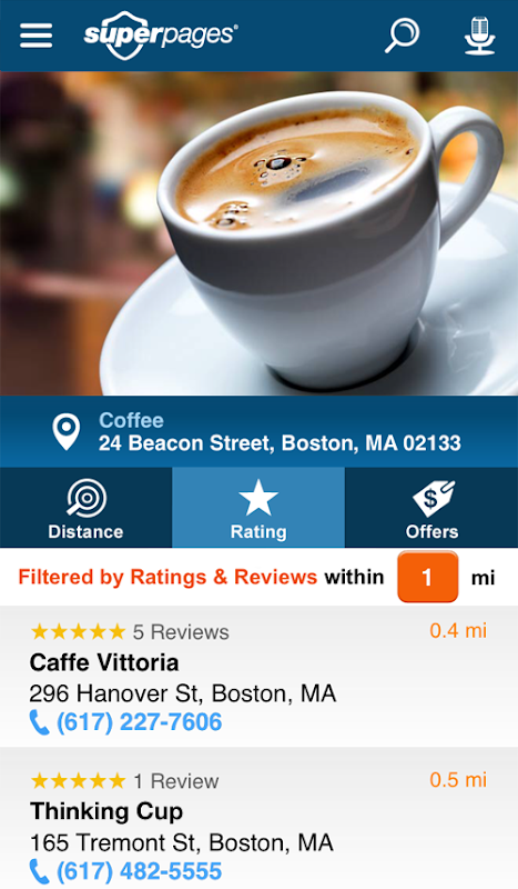 - Call or map any business with just a single tap.
