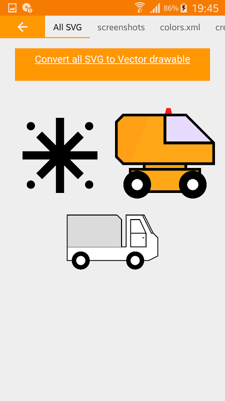 プログラムの主な目標は、VectorDrawableにSVGに変換されます。