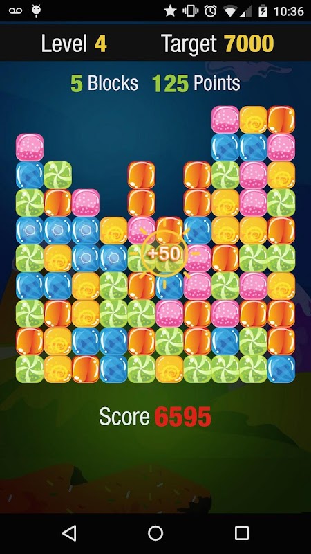Once the player taps 5 or more same color candies, bonus points will be given.