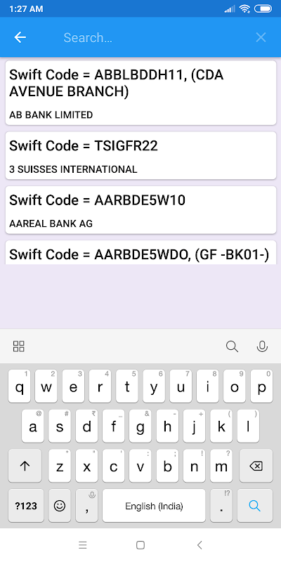 SWIFTモバイルアプリケーションは以下の情報を提供します:
