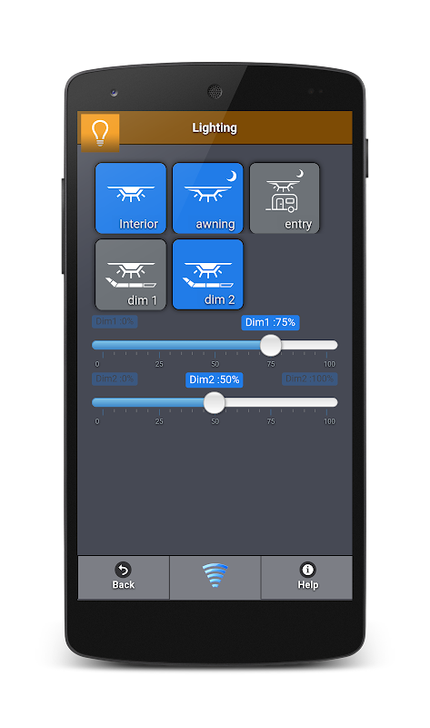 Lighting Page <-- Control all lights and model dependant allow split dimmer control.
