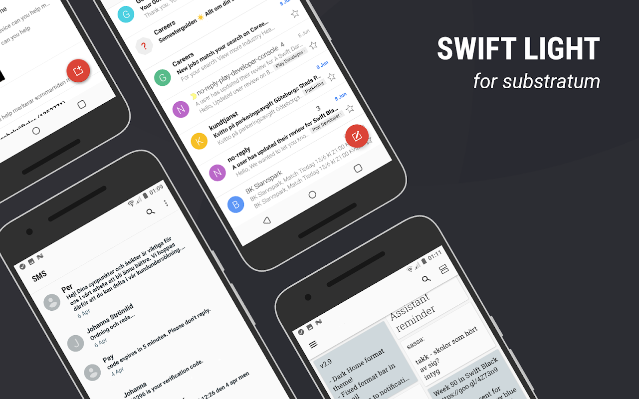 これはスウィフトライト、基層のテーマです。このテーマでのアイデアは、アプリのすべての光にすることです。それは、AndroidのOとサムスンに触発され、あなたは基層のテーマエンジンとそれを使用しています。それはネクサス&ピクセル / のOxygenOSヌガー / のLineageOS / サムスンS8 / のOMS / オレオ8.0 / オレオ8.1 / OxygenOSオレオ