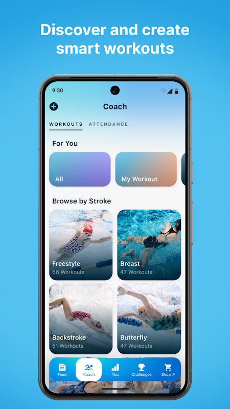 アプリをダウンロードすると、無料でスマートな水泳ワークアウトに無制限にアクセスできます。新しいワークアウト エディターを使用してワークアウトをカスタマイズおよび編集し、完璧な水泳を作り上げます。独自のワークアウトを追加してコミュニティと共有することもできます。