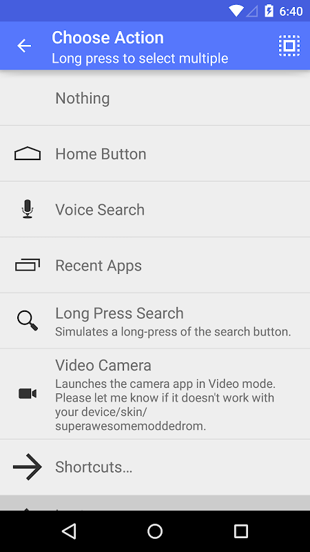 •Swipeupユーティリティの[アクショントリガー最近のアプリ、音声検索、ホームボタンを押して、クイック検索、長押し検索、またはビデオカメラ。