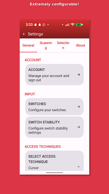SwitchifyはAndroid Accessibility Service APIを活用し、システム全体のナビゲーションとインタラクションを提供します。これにより、ユーザーは顔ジェスチャーとアダプティブスイッチ入力でデバイスを完全に操作できます。