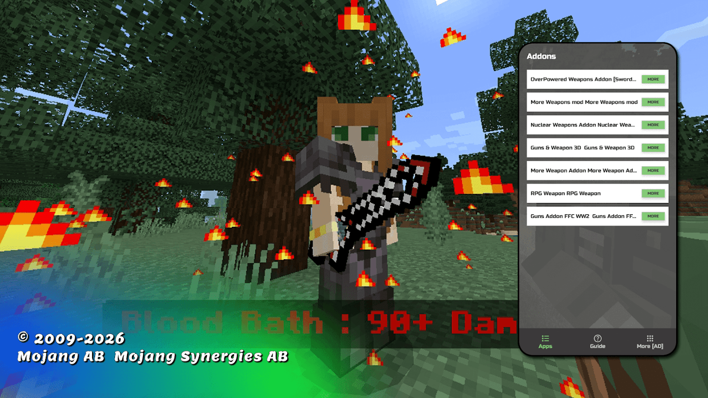 Minecraft 用の強力な剣を持ったインベントリの所有者になりたいですか?素晴らしい!そうすれば、Minecraft 用の銃を備えたアプリが必ず必要になります。結局のところ、武器 MOD を使用すると、インベントリに配置できる信じられないほど強力なアイテムを入手できます。すべての MOD とアドオンは、Minecraft に信じられないほど多様な武器を提供します。もう身を守るために弓矢を使う必要はありません。結局のところ、Minecraft の新しい剣 MOD を使用できます。結局のところ、これまで使用していた標準的な武器や剣の MOD よりもはるかに優れています。さらに、この mcpe 武器はそれほど強力なダメージを与えられなかったため、非常に難しくて退屈です。しかし、それでも、プレイヤーには脱出する方法があります。まったく新しいマテリアルから、Minecraft の新しい武器 MOD を追加できます。 mcpe 用の剣を使用すると、すべての暴徒にとって危険になる可能性があります。この Minecraft 用の剣 MOD を使用すると、誰にも怯えることなく自分自身のために立ち上がることができるようになります。