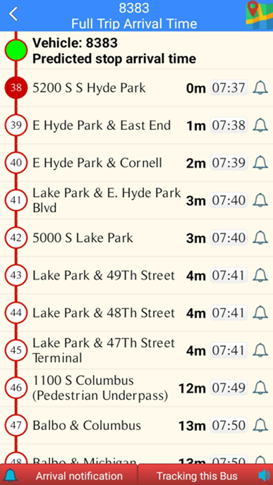 -特定のルートをクリックすると、すべてのストップシーケンスとその推定到着時間がさらに表示されます