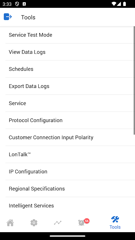 このアプリは、Wi-Fi または Trane Connect Secure Remote Access を使用して機器のセットアップ、監視、サービスを行うための Symbio 800 チラーおよび IntelliPak コントローラーもサポートしています。