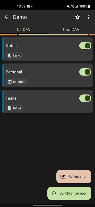 このアプリは、Nextcloud および安全な HTTPS WebDAV サーバーとの同期をサポートしています