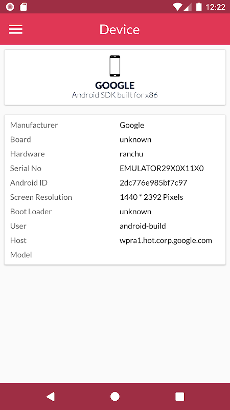 デバイス情報は、以下のように分類されたあなたのAndroidデバイスの以下の情報を提供します。