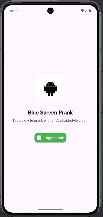 アプリを起動し、「Androidクラッシュをトリガー」ボタンをタップします。画面が「KERNEL_PANIC」状態に変わり、重大なシステムエラーを模倣します。ログメッセージが次々と表示され、まるで本物のデバイスの故障のようです。アプリはこの状態でロックされるため、簡単には抜け出せず、臨場感あふれるいたずら体験を味わえます。