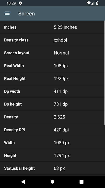 Android携帯電話のシステム情報、画面情報、バッテリー情報を表示します。