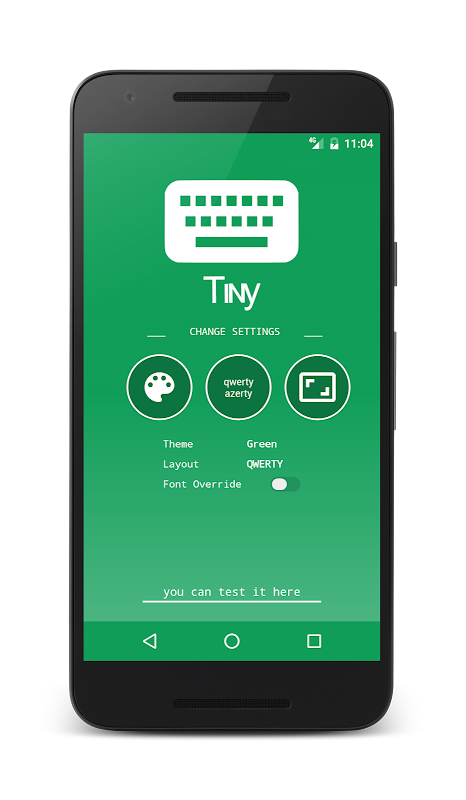 8色から選択するか、独自のキーボードサイズを設定できます。 Tiny Textは、さまざまなキーボードレイアウト(QWERTY、AZERTY、QWERTZ、Dvorak、およびColemak)もサポートしています。