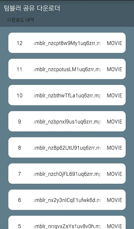 텀블러 동영상, 텀블러 이미지, 텀블러 움짤 등 한번 다운로드 받은 내역이 기록이 되며