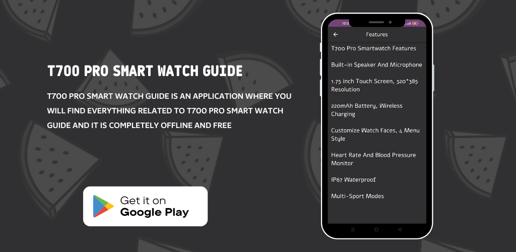 このアプリでは、T700 pro スマート ウォッチについて必要な詳細をすべて見つけることができます。