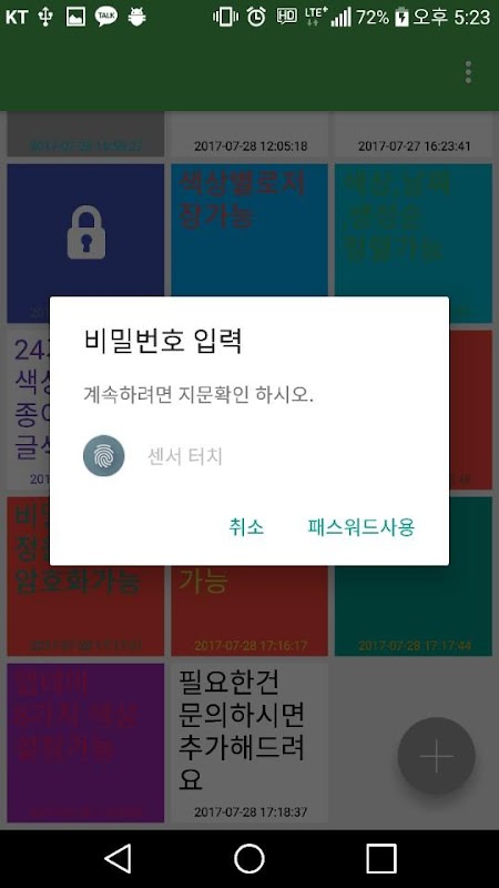 メモ帳24色のカラーを利用した文字と紙の色の設定が可能であり、指紋とパスワードを使用したロックの方法を使用して隠したいメモ簡単かつ迅速にロックメモ帳