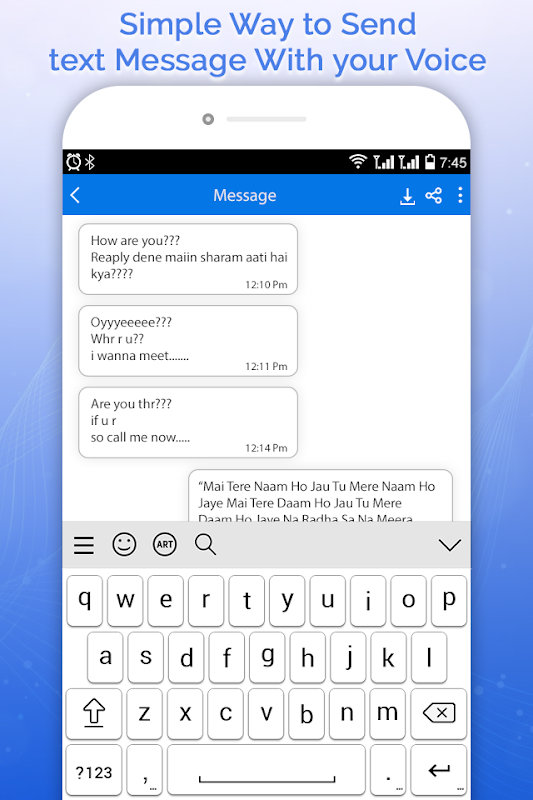 This app is simply amazing tool to type a text like message, lines, story by speaking only Voice will automatically translates to the text in any language thats it.