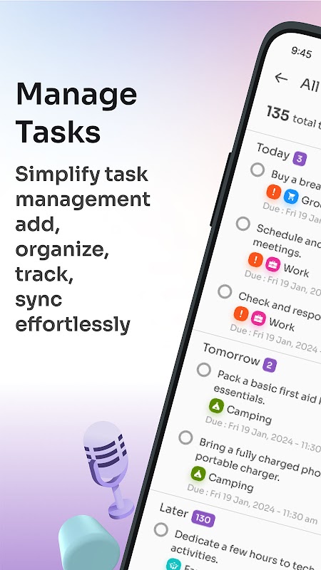 生産性と利便性を兼ね備えたタスク管理アプリへようこそ。 To Do リストを入力するのにうんざりしていませんか?私たちのアプリを使用すると、タスクを音声で実行するだけで、時間と労力を節約できます。仕事関連の割り当て、家事、家族の活動など、当社のアプリを使用すると、外出先でもタスクを簡単に記録できます。