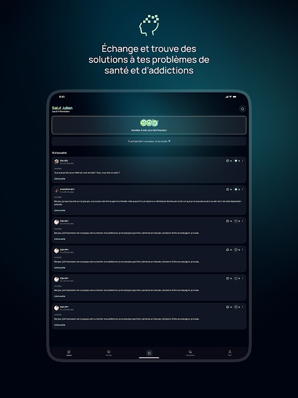 Talkity t’aide à briser l’isolement face aux troubles psychiques, maladies et addictions. 💬 Poste ton vécu, découvre d’autres histoires, échange en toute bienveillance. ✨ Depuis septembre 2025, tout est entièrement gratuit : art-thérapie, méditations, journal des émotions et plus encore, pour aider le plus grand nombre. 🤝 Talkity évolue avec sa communauté. Merci d’en faire partie 🩵