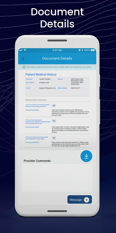 •安全なメッセージング:組み込みのメッセージングモジュールを介して、いつでも医師と安全に通信します。