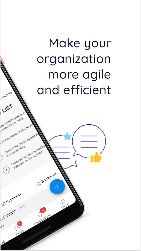 •プッシュ通知を受信して、新しい出版物/アクティビティおよび新しいチャットメッセージについて通知します。