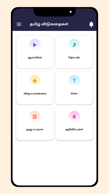 特徴: Tamil Riddles / Tamil Puthir は、このタミル語ヴィドゥカタイ語アプリを使用して、その中に隠された謎と驚きを楽しむ最高のアプリの 1 つです。このタミル語なぞなぞアプリを使用すると、創造的思考スキルが向上します。 Tamil Puthir アプリは中毒性があり、非常に楽しく、心をより健康にします。タミル語のなぞなぞ/タミル・プーチルの遊びは文献学の発展の一部であり、分析的思考と創造性にも役立ちます。私たちのタミル・ヴィドゥカタイ/タミル・ポザーオフラインアプリは、タミル語を上達させるのに最適なアプリの1つです。 Tamil Vidukathai アプリは、タミル語の楽しいゲームです。 Tamil Vidukathai / Tamil Puthir は、友達や両親と一緒にプレイするとさらに楽しくなります。このなぞなぞタミル語アプリを通じて、定期的に頭の体操をすることができます。そうすることで、あなたの脳は常にアクティブになり、既成概念にとらわれずに考えることができます。このアプリは、タミル語のヴィドゥカタイガル、タミル語のなぞなぞ、タミル語のプーチル ヴィドゥカタイガルを提供します。