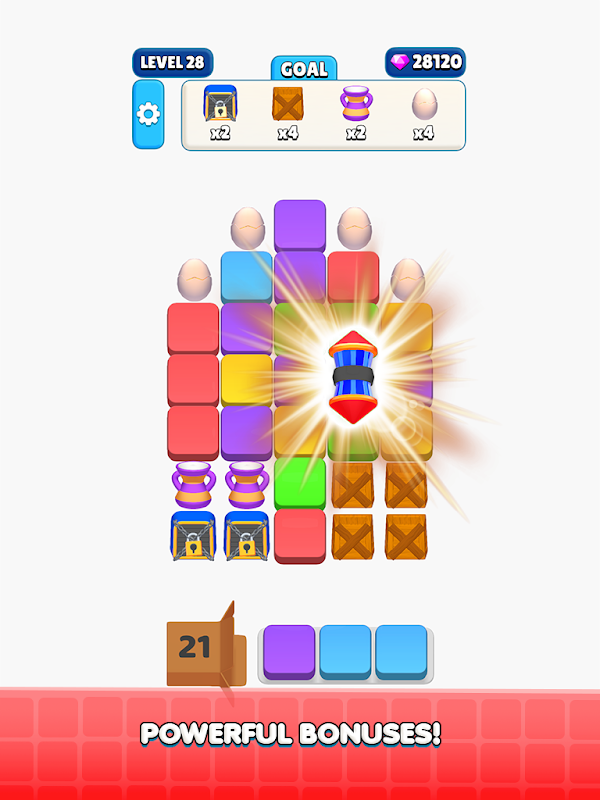 ひねりを加えたブラストゲーム!デッキ内のタイルを使用してボードをクリアします。タイルから出ないように注意してください!